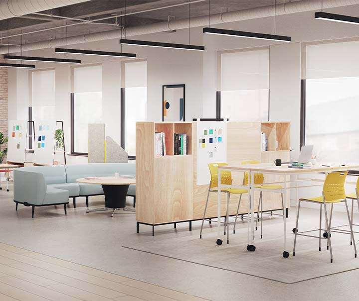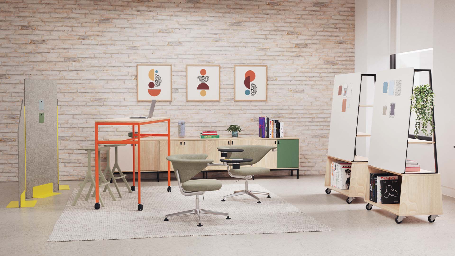 Play Printer Unit is shown as a barrier from a breakout space to a workspace. A multi-purpose product that has various ways to use given the task in hand.